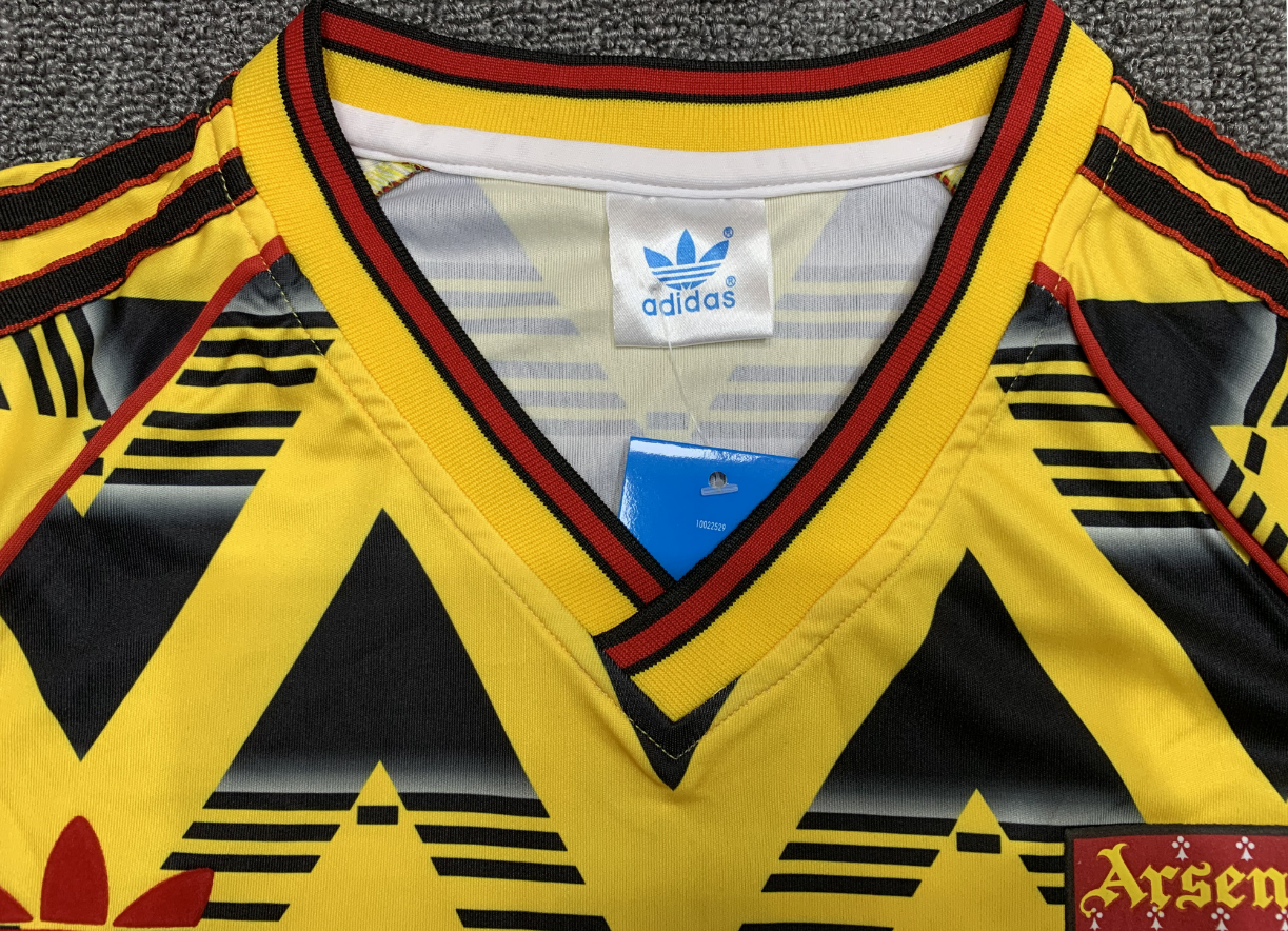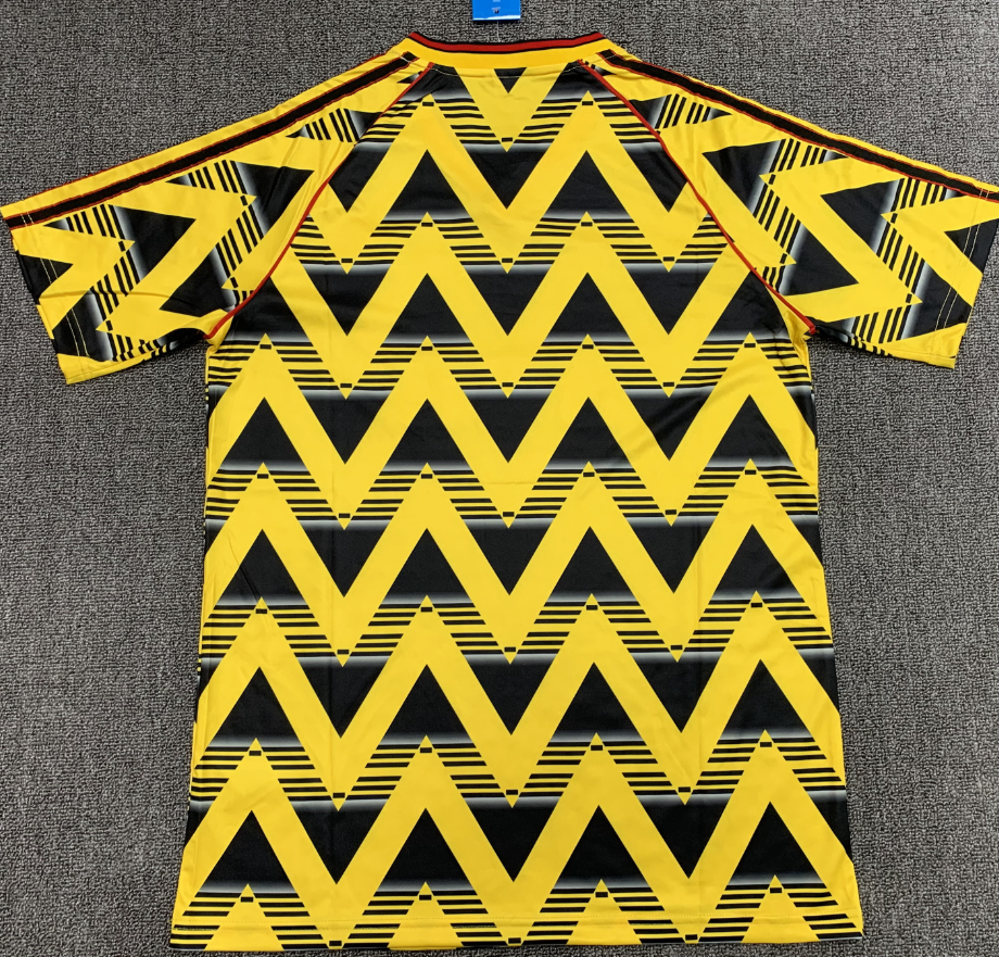 Celebrate the early ’90s with the Arsenal 1991/93 Away Kit — a distinctive design featuring a vibrant yellow base with blue and red accents that stood out on the pitch. This jersey captures the bold and confident spirit of the Gunners during a key period in their history.