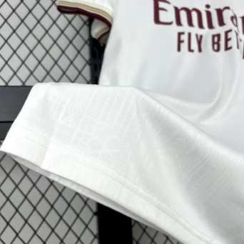 Crafted with lightweight, breathable fabric and advanced moisture-wicking technology, the kit offers superior comfort and performance both on and off the pitch. The Arsenal crest is prominently displayed alongside unique design elements inspired by the club’s heritage and the dynamic energy of its supporters.